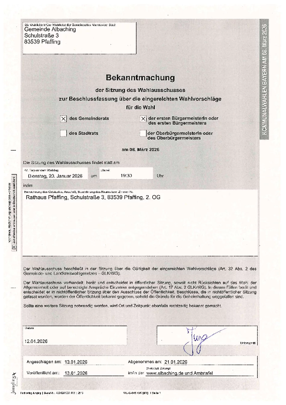 Amtliche Bekanntmachung