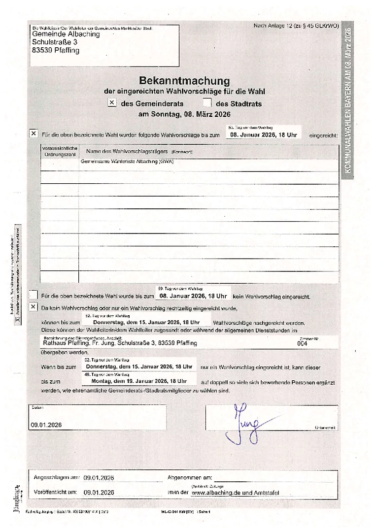 Bekanntmachung der Wahlvorschläge