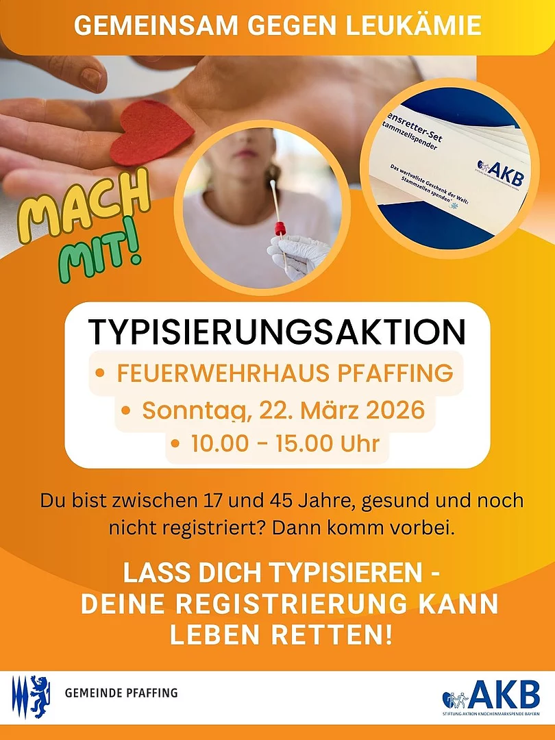 Er freut sich über die Nominierung und hofft, bei der Typisierungsaktion, gemeinsam mit der AKB und hoffentlich vielen Bürgern der Gemeinde Pfaffing einen wesentlichen Beitrag im Kampf gegen Leukämie leisten zu können.